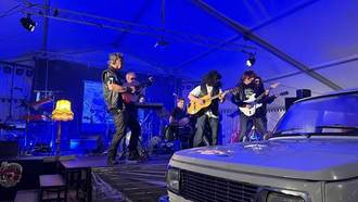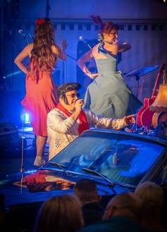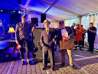 Um 19.00 Uhr war es dann so weit: Einlass für die große Fete mit der Band Seven Up und einigen Special Guests. Am Platz vor dem Eingang tummelten sich schon lange vorher die Menschen und ruckzuck war das Zelt bis auf den letzten Platz gefüllt. Begonnen wurde das Fest – wie schon am Freitag – mit unserem Feuerwehrfilm und dem Bierfassanstich. Danach heizte die Liveband der Partygemeinde ordentlich ein. Alle Helfer kannten ihre Aufgaben: Einlass überwachen, Getränke ausschenken, Würstchen grillen, Popcorn rösten, Kuchen verkaufen, Cocktails mixen, Fischbrötchen belegen, Technik, Licht, Ton und Menschenmassen im Blick haben und nebenher: Die unglaubliche Freude aller Besucher genießen. Doch da war doch noch was? Special Guests? Ja! Zu Besuch kamen in den Band-Pausen die Olsen Bande mit Michael Jackson im Franz-Jäger-Tresor, die Puhdys und last, but not least, der King: Elvis Presley mit seinen Tänzerinnen.