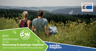 Jetzt ist volle Unterstützung gefragt! Ab jetzt können Wanderfans aus ganz Deutschland ihre Stimme abgeben, damit der Kammweg Erzgebirge-Vogtland eine größtmögliche Chance auf den begehrten Titel erhält. Die Abstimmung erfolgt online unter www.wandermagazin.de/wahlstudio oder per Wahlkarte und läuft bis zum 30. Juni 2025.