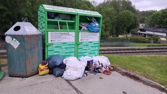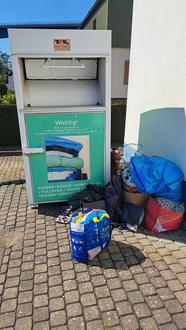 Apropos Sauberkeit. Die Ordnung an unseren Containerstandorten regt mich zurzeit besonders auf. Es ist Aufgabe der Firmen die gefüllten Container zu leeren, Ausreden wie keine Leute oder eine Firmenpleite können wir hier nicht gelten lassen. Gespräche gab es schon zur Genüge. Eines kann ich aber gar nicht nachvollziehen, der Container ist voll und ich stelle meine Tüten oder andere Behältnisse davor. Es wird sich schon jemand darum kümmern und im Endeffekt räumt es die Gemeinde weg. So funktioniert es aber nicht. Und ich glaube nicht, dass es nur „Durchreisende“ sind, die das Chaos verursachen. Hier zwei Beispiele.