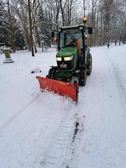 Starke Schneefälle setzten in der Nacht und in den Morgenstunden ein, so dass die Kollegen zu früher Stunde die Räumtechnik (Im Bild Einsatz in Zschortau) und Ihre Muskelkraft zum Freimachen der Verkehrswege einsetzen mussten. Dabei waren sie schnell auf Betriebstemperatur, da das Zeitfenster bis zum Beginn des morgendlichen Personen - und Autoverkehrs im Auge behalten werden musste.