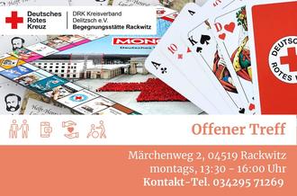 Offener Treff nicht nur für Senioren – DRK Begegnungsstätte Rackwitz, Märchenweg 2, 04519 Rackwitz, montags, 13:30-16:00 Uhr.