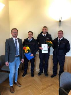 Auch hier nahm der Bürgermeister die Ernennung vor. Er bedankt sich gemeinsam mit den Gemeindewehrleiter und Gemeinderat Andy Winter für die Bereitschaft zur Annahme des Amtes, die loyale und angenehme Zusammenarbeit und überreicht die Ernennungsurkunden.