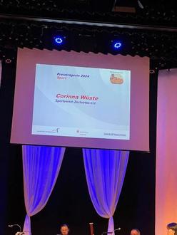 Sie ist als Vorstandsvorsitzende der SG Zschortau 1920 e. V. an der Förderung der einzelnen Sektionen und am Zusammenhalt im Verein interessiert. Als treibende Kraft ist sie für umfangreiche Investitionen an und auf den Sportstätten mit verantwortlich. Corinna Wüste engagiert sich, so die Jury, „überdurchschnittlich für die Belange des Kinder- und Jugendsports.“ (zitiert LVZ- Ausgabe 23.04.2024)