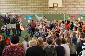 Musikalisch ging es am 24.04.24 hinein in den Frühling. War das ein großartiges Fest: Alle Klassen, der Chor und einzelne Kinder an ihren Instrumenten verbreiteten Frohsinn und Lebensfreude. Zum Dankeschön gab es danach ein wildes Hüpfburgenspringen samt leckerem Schmaus und Trank für alle Kinder, Eltern und Gäste – herzlichen Dank hierbei an den Förderverein für die Organisation, ebenso herzlichen Dank für die Geldspenden, die uns erneut für das nächste Schuljahr für die Qualität unsere GTA-Bereichs zur Verfügung stehen.