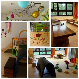 In den Räumlichkeiten der „Glühwürmchen“ stand die Erholung im Vordergrund: mit Aromaölen, Massagebällen und Klangschalen erzählten zwei Erzieherinnen eine Entspannungsgeschichte. Dabei machten es sich die Eltern auf Yogamatten gemütlich, während die Kinder sie mit Massagebällen massierten. Hin- und wieder machte es sich aber auch ein Kind auf der Yogamatte bequem und wollte lieber von Mama oder Papa massiert werden.