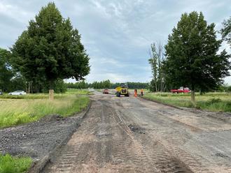 Auf der südlichen Gießereistraße bzw. „Ersatzstraße“ waren durch die hohe Frequentierung durch Schwerlastverkehr bereits zahlreiche Risse an der Asphaltdecke zu erkennen. Dieser Teilabschnitt wurde Anfang Juni 2024 gefräst (siehe Bild) und soll in den nächsten Wochen einen neuen Asphaltaufbau erhalten.
