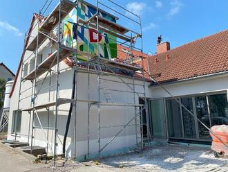 Die Bauarbeiten an dem größten kommunalen Bauvorhaben schreiten planmäßig voran. Im Außenbereich wurde die Fassade weitgehend fertiggestellt.