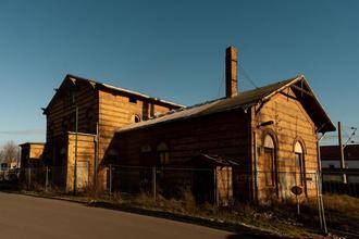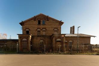 Ehemaliges Bahnhofsgebäude vor Sanierung; Seitenansicht