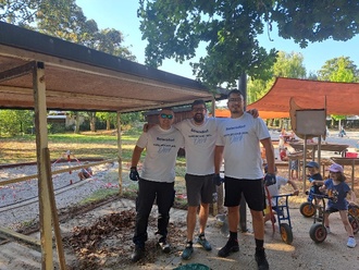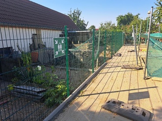 Im Spätsommer ging ein lang gehegter Wunsch der Mitarbeiterinnen in der Kita Zschortau in Erfüllung. Die Kollegen vom Betriebshof Zschortau ersetzten einen baufälligen maroden Teilbereich der Grundstückbegrenzung durch einen modernen Stabmattenzaun und brachten zusätzlich einen Sichtschutz an.
