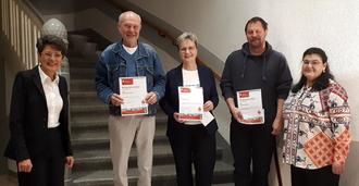 Die Bürgerpreisverleihung erfolgte in der Stadtratssitzung am 26. September 2024. Auf dem Bild v. l. n. r.: Bürgermeisterin Frau Kerstin Schöniger, Herr Karl-Heinz Liebold, Frau Daniela Erber, Herr Thomas Neubert, Frau Simone Dorsch (Sparkasse Vogtland)