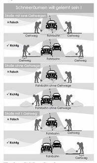 | 4. | Für jedes Hausgrundstück ist ein Zugang zur Fahrbahn und zum Grundstückseingang in einer Breite von mindestens 1,25 m zu räumen. |