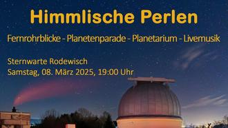 Zu Beginn wird den Gästen die Kraterlandschaft des Mondes mit dem großen Teleskop der Sternwarte präsentiert. Auf der Beobachtungsplattform kann die Planetenparade von Venus, Jupiter und Mars verfolgt werden. Der Blick zu den hellen Wintersternen am abendlichen Firmament soll den Beobachtungsteil in der Sternwarte abrunden.