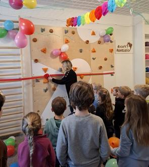In unserer Einrichtung gab es in den letzten Wochen gleich zwei besondere Anlässe zum Feiern. Am 17. Februar weihten wir unseren frisch renovierten Sportraum feierlich ein. Neben neuen Bänken und Sportutensilien freuen wir uns besonders über eine großzügige Spende unserer Kollegin und Erzieherin Rica Sitte-Hannemann: Eine Kletterwand mit angrenzender Sprossenwand und Holzrutsche bereichert jetzt die Bewegungsmöglichkeiten unserer Kinder. Als Dankeschön ziert nun ein Holz-Emblem mit der Aufschrift „Ricas Kraxelreich“ unseren Sportraum. Mit einem fröhlichen Tanzprogramm und anschließendem mit Ballonregen auf. Stellvertretend für die Volkssolidarität Vogtland gratulierte Herr Trommer Rica für die Spende, die unseren Sportraum in wahres Bewegungsparadies verwandelt hat.
