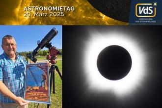Anlässlich des Astronomietages 2025 berichtet der Sternwartenleiter Olaf Graf von seinen Sonnenfinsternisreisen in die Vereinigten Staaten von Amerika in den Jahren 2023/24. Neben spektakulären Bildern der Finsternisse erfahren die Besucher Wissenswertes über die Beobachtung von Finsternissen sowie über Land und Leute. Außerdem gibt er einen Ausblick auf die Möglichkeiten der Finsternisbeobachtungen in den nächsten Jahren. Das Veranstaltungsticket für die Planetariumsveranstaltung „Auf der Jagd nach der Schwarzen Sonne“ um 10.00 Uhr oder 14.00 Uhr berechtigt gleichzeitig zur geführten Finsternisbeobachtung ab 11:30 Uhr auf dem Beobachtungsdach der Sternwarte.