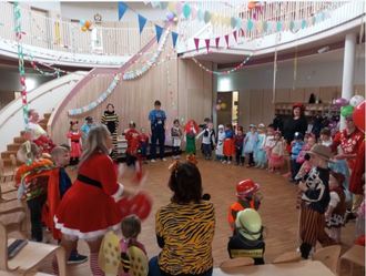 Ein besonderes Highlight war das kleine Theaterstück, das die Erzieherinnen für die Kinder vorbereitet hatten. Mit viel Humor und Engagement sorgten sie für große Begeisterung und viele lachende Gesichter im Publikum. Es war ein rundum gelungener Faschingstag voller Freude, Gemeinschaft und unvergesslicher Momente – und ganz bestimmt nicht unsere letzte große Faschingsfeier im Schwalbennest.