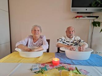 Ausgiebig genossen unsere Bewohnerinnen und Bewohner bei Kerzenschein und Entspannungsklängen Handbäder mit duftenden Zusätzen, Massagen der Hände und des Nackens, Gesichtsmasken, Maniküre einschließlich Nagellack auf Wunsch und einiges mehr.