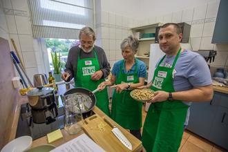 Tschechische Brotsuppe, die Schweizer Spezialität Ramequin oder der wohlklingende Nachtisch "Westfälischer Frieden" mit Pumpernickel waren einige der 5 Rezepte, die die Teilnehmer des Kochworkshops gemeinsam mit Leiterin Sieglinde Eichert zubereiteten. Beim anschließenden Tischgespräch mit Hannes Lauter ging es darum, was hat Europa mit uns zu tun, wie bereichert oder erschwert die EU unser Leben? Und wie blicken verschiedene Generationen auf die aktuellen Entwicklungen. Wir bedanken uns bei der Sächsischen Landesszentrale für politische Bildung für das tolle Angebot und freuen uns schon auf das nächste Kochevent im ROWI Labor: schon am 30.5. und am 27.06. wird wieder gekocht. Anmeldung im Stadtbüro!