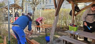 Im April fand zudem unser jährlicher Garteneinsatz statt. Mit tatkräftiger Unterstützung der Eltern und Familien konnten wir Einiges in unserem Garten für den Frühling und Sommer vorbereiten, kleine Bauaktionen und Reparaturen durchführen und ein neues Spielgerät fertigstellen. Bald wird auch wieder unser Hochbeet von den Vorschülern bepflanzt werden. Alle freuen sich, die Pflanzen jeden Tag wachsen zu sehen und lassen sich im Sommer die geernteten Früchte und Gemüse immer gut schmecken. Wir möchten uns an dieser Stelle, noch einmal ganz herzlich bei allen Eltern für die fleißige Mithilfe bedanken!