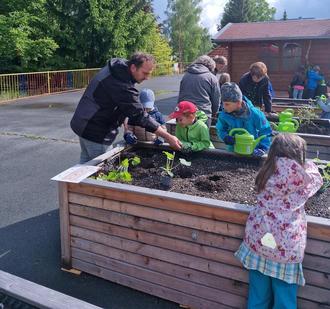 Unsere diesjährige Pflanzpatin, Frau Winter, unterstützt uns fleißig beim Gärtnern-wir sind gespannt-kleine Verluste mussten wir auch in diesem Jahr hinnehmen-die Fenchelpflanzen haben es nicht überlebt.