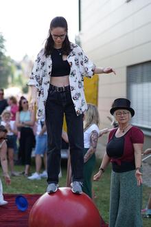 Auf dem Schulhof herrschte reges Treiben: Bei spannenden Sportwettbewerben wie Tauziehen, Torwandschießen und Tischtennis konnten sich Groß und Klein sportlich betätigen. Auf der Bühne sorgten verschiedene Acts für Unterhaltung – besonders die Trommelgruppe der Sonnenhofschule aus Auerbach beeindruckte mit ihren Rhythmen. Auch die Schülerband rockte die Bühne, und der Schulzirkus brachte mit akrobatischen Einlagen und Jonglage das Publikum zum Staunen.