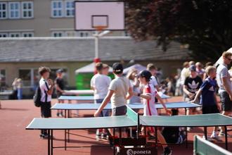 Ein besonderes Highlight bildete das abendliche Volleyballturnier, bei dem Teams aus Eltern, Lehrern und Schülern gegeneinander antraten und das Fest sportlich und stimmungsvoll ausklingen ließen.