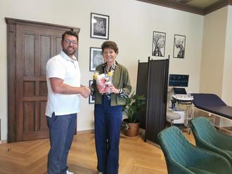 Bürgermeisterin Kerstin Schöniger gratulierte Tobias Lambert herzlich zur Eröffnung seiner Praxis in der Wernesgrüner Straße. Seit einigen Wochen bietet der Facharzt für Innere Medizin und Notfallmedizin dort das gesamte Spektrum hausärztlicher Versorgung mit internistischem Schwerpunkt an – für einen bereits großen und treuen Patientenstamm.
