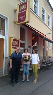 Bürgermeisterin Kerstin Schöniger besuchte die Filiale in Rodewisch auf der Auerbacher Straße. Sie überreichte Bäckermeister Mike Flechsig und Tochter Anna-Maria einen Blumenstrauß und überbrachte die besten Wünsche für die Zukunft.