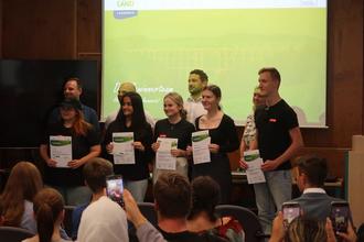 „Siegerteam bei der Preisverleihung“