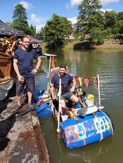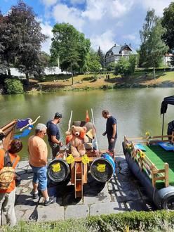 Ja und die Kirmes-das war cool-der Bummi zum ersten Mal mit einer Wasserkiste beim Rennen dabei, armer Alex!!! Am Start brach die Pedale und er ruderte mit dem Ersatzpaddel einmal um den Gondelteich-das war echt hart! Viele Bummi-Fans haben mitgefiebert und ihn um die Schleife förmlich getragen!