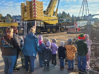Mit großer Freude können wir berichten: Die Bauarbeiten an unserer Kindertagesstätte Schwalbennest gehen weiter voran. Ein besonderer Moment für uns alle war die Fertigstellung der neuen Brücke, die den Zugang zu unserer Kita ermöglicht. Unsere Kinder haben die Brücke inzwischen voller Begeisterung bestaunt. Gemeinsam mit ihren Erzieherinnen und Erziehern gingen sie neugierig zu dem Bauwerk, betrachteten es von allen Seiten und stellten viele Fragen. Die leuchtenden Augen und die Freude der Kinder haben uns gezeigt, wie spannend es für sie ist, den Fortschritt direkt erleben zu dürfen. Für die Mädchen und Jungen war es ein spannender Vormittag, an dem sie hautnah erleben konnten, wie ihre Kita Stück für Stück weiterwächst. Auch für das gesamte Team ist die Brücke ein wichtiges Zeichen: Sie zeigt, wie viel bereits geschafft wurde und wie es mit großen Schritten weitergeht. Wir blicken voller Zuversicht auf die kommenden Wochen, in denen unsere Einrichtung Stück für Stück wächst. Die Brücke ist ein wichtiger Meilenstein auf diesem Weg – und wir freuen uns darauf, bald noch viele weitere Fortschritte gemeinsam mit den Kindern zu entdecken und auf unseren gemeinsamen Umzug im November.