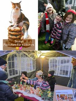 Wir waren uns einig: Weihnachten ist viel mehr als Geschenke kriegen! Weihnachten ... das ist so ein Gefühl. Ein Gefühl von Freude, Geborgenheit, Wärme, Miteinander und Herzlichkeit. Schnell war uns auch klar, dass sich Weihnachten leider nicht für Jeden so anfühlt. Und während die CD unser Lieblingslied „In der Weihnachtsbäckerei“ spielte und Jacky um unsere Beine strich, um ihre Leckerlis zu erbetteln, wuchs eine Idee. Nicht jede Katze hat es so gut wie unsere Kita-Katze, aber vielleicht können wir das für ein paar Miezen ändern. „Jackys Plätzchen für Kätzchen“ war geboren!