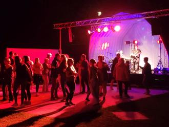 Dank der fleißigen Helfer des Heimatvereins konnte anschließend die Zwischenzeit mit Gegrilltem und selbstgemachten Flammkuchen kulinarisch überbrückt werden. Am Abend schließlich brachten die Roadrunners das zahlreich erschienene Publikum zum Tanzen. Die Fläche vor der Bühne war während des fünfstündigen Programms, bei dem das Vater-Sohn-Duo die größten Hits der letzten 40 Jahre zum Besten gab, regelmäßig gefüllt.