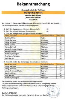 Querfurt, 19 Uhr konstituierende Sitzung des Pfarrgemeinderats
