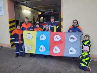 Am 10.02.2023 besuchte unsere Gruppe Öffentlichkeitsarbeit die Ortsfeuerwehr Stedten. Natürlich kamen wir nicht mit leeren Händen. Bereits im vergangenen Jahr konnten sich einige Kinder- und Jugendwehren über Geschenke der Arbeitsgruppe freuen. Über ein großes längliches Paket welches natürlich bunt verpackt war konnten sich die Kinder freuen. Sehr eifrig wurde dieses dann natürlich ausgepackt. Zum Vorschein kam eine Plane mit tollen Farben aber einem ebenso wichtigen Hintergrund. Mit dieser Plane können die Kinder zukünftig das richtige Antreten, sortiert nach Trupps, üben. Eine Ausbildungshilfe, auch für die Jugendwarte, welche durch den bunten Druck vorallem den Kindern Spaß machen dürfte. Lange wollten wir die Kinder und Jugendlichen aber nicht aufhalten denn ein Besuch bei der Werkfeuerwehr Romonta stand an.