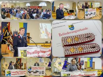 Ihm schloss sich Kameradin Kießling mit dem Bericht über die Kinder- und Jugendfeuerwehren an. Im Anschluss konnten sich einige Kameradinnen und Kameraden über Beförderungen, Auszeichnungen und Ehrungen freuen. Landrat André Schröder nutzte die Gelegenheit sich persönlich für das überdurchschnittliche ehrenamtliche Engagement zu bedanken. Für ihn sei es heutzutage nicht selbstverständlich das man alles stehen und liege lasse um anderen unentgeltlich zu helfen. Diesen Worten schlossen sich auch der Bürgermeister Jürgen Ludwig sowie sein Stellvertreter Martin Blümel an. Auch sie betonten wie wichtig die Institution Feuerwehr in jeder Ortschaft sei. Sie sind ebenfalls dankbar über die stete Einsatzbereitschaft aller Kameradinnen und Kameraden und sind mit dem derzeitigen Ausbildungsstand mehr als zufrieden.