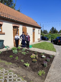Vor dem Dorfgefängnis entstand ein neues Beet mit mehrjähriger bienenfreundlicher Bepflanzung. Dort wurde bereits im Vorfeld der komplette Boden getauscht. Einen besonderen Dank möchten wir hier Franz Engelke und Udo Kilian aussprechen, die mit schwerem Gerät geholfen haben.