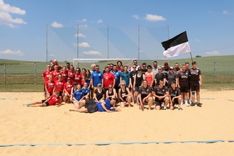 Am Samstag, dem 10.06.2023 fand das Beach-Mixed Turnier bei schönstem Wetter auf der Beachanlage vom BSV „Fichte“ Erdeborn statt. Der Vorstandsvorsitzende F. Hammerschmidt begrüßte die teilnehmenden Mannschaften und ließ das Turnier um 13:30 Uhr starten. An den Spielen nahmen eine Mannschaft vom SV Union Halle Neustadt teil, der BSC Blankenheim, sowie drei gemischte Mannschaften von der Frauen- & Männermannschaft des BSV „Fichte“ Erdeborn. Gespielt wurde jeder gegen jeden und das acht Minuten lang. Es waren schöne Spiele zu sehen, mit vielen unterschiedlichen Möglichkeiten der Spielweise vom Beachhandball. Es gab viele sehenswerte Treffer und aufeinandertreffen. Hervorzuheben war, dass der BSC Blankenheim eigentlich in seiner Freizeit Fußball spielt und als Außenseiter in das Turnier ging. Jedoch machten sie so einigen Mannschaften das Leben schwer und verkauften sich über das Turnier hinweg super, was sicherlich auch dem mitgereisten Fanblock zu verdanken war. Am Ende konnte sich der SV Union Halle Neustadt als Turniersieger kühren.