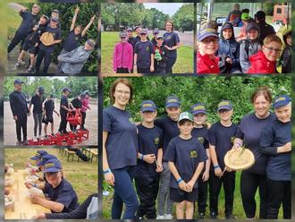 Hochmotiviert und mit viel Spaß an der Freude arbeiteten wir die ersten 4 Stationen ab. Gegen 12:30 Uhr gab es lecker Mittagessen aus der Gulaschkanone. Die Nudeln mit Feuerwehrsoße schmeckten allen Kindern sehr gut. Im Anschluss absolvierten wir die letzten 2 Stationen. Zur Belohnung gönnten wir uns anschließend eine entspannte Rundfahrt mit der Peissnitzbahn. Auch viele Infostände gab es zu erkunden. Unsere Kinder besuchten den Stand der ADAC Luftrettung sowie der Polizei. Hier konnten Fragen gestellt und tolle Buttons gebastelt werden. Leider spielte das Wetter nicht den ganzen Tag mit. Gegen 14:30 Uhr ließ der Regen gar nicht mehr nach und die Veranstaltung endete dadurch etwas früher als geplant. Unsere gute Laune konnte aber auch der Regen nicht trüben. Bei einem leckeren Eis zum Tagesabschluss kehrten wir anschließend gegen 16 Uhr ins Gerätehaus Röblingen zurück. Wir hatten viel Spaß und freuen uns schon auf das nächste Jahr!