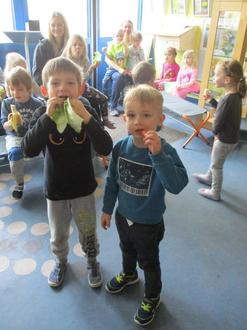 Am Morgen des 14. März 2023 wurde gemeinsam mit den Kindern eine gesunde Zwischenmahlzeit - gestiftetes Gemüse, Dipp und Smoothes - vorbereitet und anschließend zur feierlichen Übergabe der Plakette mit Genuss verspeist. Zahlreiche Gäste folgten unserer Einladung. Wir konnten Eltern, unsere Ortsbürgermeisterin, Vertreter des Geschichts- und Traditionsvereins und des DRK-Ortsvereins begrüßen und ihre Verbundenheit mit unserer Institution spürbar erleben.