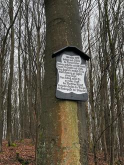 Vor den Feierlichkeiten brachten die Vereinsmitglieder zudem das Informationsschild am beliebten Wanderziel Lutherbuche am Oberen Bandweg wieder an. Nachdem das Holzschild durch die Witterung stark in Mitleidenschaft gezogen und heruntergefallen war, wurde es von Bernd Ehrenberg fachmännisch restauriert. Bereits von weitem ist es nun an der Lutherbuche gut sichtbar und informiert den Wanderer wieder über Luthers Blick auf Stolberg.