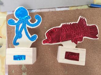 Gemeinsam werden Münzen unter die Lupe genommen und darauf abgebildete Tiere betrachtet. Dann wird ein eigenes Motiv in Metallfolie geprägt und auf Holz befestigt.