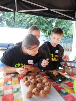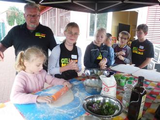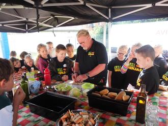 Am Donnerstag, dem 31.08.2023, hatten wir, die Kinder der 4. Klasse, einen besonderen Projekttag. Über den ganzen Schultag begleitete uns Klaus, der Grillmeister, beim Zubereiten verschiedener vegetarischer Grillspeisen. Nach Übergabe der Grillninja-T-Shirts wurden wir in 4 Gruppen aufgeteilt. Dann begann das Grillabenteuer. Wir bereiteten gemeinsam und selbstständig die Speisen zu, die wir uns am Ende schmecken ließen. Insgesamt gab es 4 Gänge. Zuerst Flammkuchen danach Burger anschließend Wok-Gemüse mit Würstchenspieße und zum Dessert gab es lecker geschnittene Fruchtspieße mit selbstgemachten Fruchteis. Wir bedanken uns ganz herzlich bei Klaus, von dem wir vieles gelernt haben und bei der Sparkasse MSH für die Finanzierung des Projektages.
