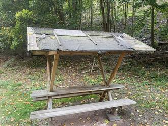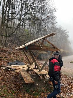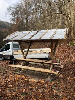 Die Sitzraufe im Kalten Tal bekam am 18.11.23 eine neue Bedachung, die Sitzbänke und der Tisch wurden gründlich gereinigt und aufgearbeitet, so dass sie nun wieder gut genutzt werden kann, Gäste und Wanderer zum Verweilen und Ausruhen einlädt.