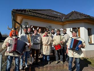 Ausgerüstet mit Dolchen, Zerrwanst und Schellenbaum,
