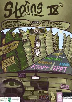 Am 12.08. findet das "Stains in the Sun" in der Moosheide in Zwönitz statt. Das Open Air bietet eine Mischung aus Livemusik, Workshops, Kreativangeboten und Angeboten für Kinder. Nachdem die letzten zwei Ausgaben des "Stains" auf dem Platz am Oberbecken in Raschau-Markersbach stattfanden und es somit inoffiziell als das höchstgelegene Festival Deutschlands galt, findet es dieses Jahr erstmalig in der Moosheide in Zwönitz, Schlüsselstraße 5 statt. Die Besucher:innen erwarten 6 Live-Bands, "KMPFSPRT" (Pop-Punk), Magdebored (Post-Punk), Adrats (Grrrl-Garage-Punk), Wrecked Culture (Hardcore) sowie die zwei queeren Punkbands Fatique und Goldzilla. Zu späterer Stunde rundet ein DJ bei der Afterhour das Open Air musikalisch ab.