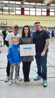 Zu Beginn des Jahres, am Wochenende vom 06. und 07.01.2024 organisierte der FSV Blau-Weiss Schwarzenberg zusammen mit der Freizeitmannschaft „Die Knipser“ das 8. Schwarzenberger Hallenmasters in der Ritter-Georg-Halle. Vor vollen Tribünen an beiden Tagen sahen die Zuschauer wieder hochklassigen Budenzauber, bei dem sich am Ende das Team von Traktor Dittersdorf im Finale gegen DC United München durch setzte und den Pokal in die Höhe halten durfte. Der FSV Blau-Weiss und „Die Knipser“ unterstützten auch dieses Jahr wieder das Team von Erzgenial, welches sich für wohltätige Zwecke einsetzt. So kamen in der Spendenbox an dem Wochenende 500€ zusammen. Außerdem konnten Erzgenial aus den Eintrittsgeldern weitere 750€ übergeben werden.