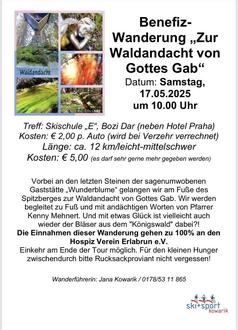 Am Samstag, 17.05.2025 um 10:00 Uhr laden wir herzlich ein zur Benefizwanderung zur Waldandacht nach Gottes Gab ein – gemeinsam unterwegs sein und Gutes bewirken.