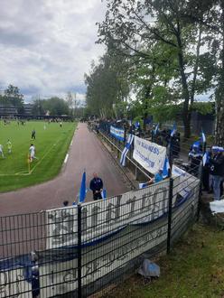 Nach einer Ewigkeit stand die 1. Männermannschaft von Blau-Weiss endlich mal wieder in einem Pokalfinale. Im Endspiel des Sparkassen Erzgebirgspokals traf Blau-Weiss am Pfingstsamstag, den 18. Mai 2024 auf dem Rasenplatz des VfB Grünhain-Beierfeld, auf den ESV Zschorlau. Vom Verein wurde ein Fanmarsch unter dem Motto „Alle in Blau nach Beierfeld“ organisiert, an dem Mitglieder, Familienangehörige und Fans teilnahmen. Banner, Fahnen und Doppelhalter wurden organisiert und erstellt. Der gesamte Verein half mit, damit das Finale zu einem unvergesslichen Tag für alle Blau-Weissen werden sollte. Der Fanmarsch startete dann am Finaltag, mit ca. 80 Leuten, auf dem Markt in Beierfeld und führte lautstark zum hinteren Eingang des Stadions am Spiegelwald. Dort wurde der Stadionbereich in Blau und Weiss gehüllt und die Spannung bis zum Anpfiff stieg minütlich. Am Ende waren es knapp 200 Blau-Weisse, die sich zum Pokalfinale im Stadion einfanden.