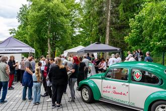 Eine kleine historische Ausstellung lieferte Einblicke in die Geschichte der Volkssolidarität Westerzgebirge e.V. und zeigte die aktuellen Angebote des Sozialverbandes. Viele Blicke zog auch der historische VW Käfer, eine Leihgabe der Volkssolidarität Chemnitz, mit seiner auffälligen Beklebung im Volkssoli-Design auf sich. Ein Highlight für die Kleinsten war der Stand der Kita Schatzsucher. Hier konnten die Kinder ihr Wissen über des Menschen liebstes Haustier beweisen und einen Hundeführerschein erwerben.