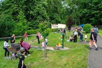 Das Außengelände der Kita Hofgarten der Volkssolidarität Westerzgebirge e.V. bot den Kindern viele Spielmöglichkeiten und den Familien viel Raum zum Ausprobieren der zahlreichen Angebote.